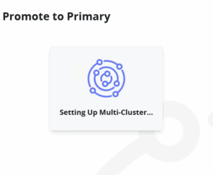 Dito isso, vamos navegar nas configurações e ver como seria o passo a passo. O meu ambiente consiste em dois clusters kubernetes com K3s e uma instância de Veeam Kasten em cada (kasten-a e kasten-b). No Kasten que você quer definir como primário (aqui é o kasten-a), basta navegar até Multi-Cluster e clicar em Promote para promove-lo a primário.