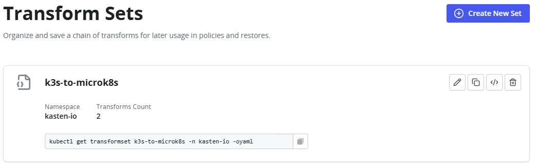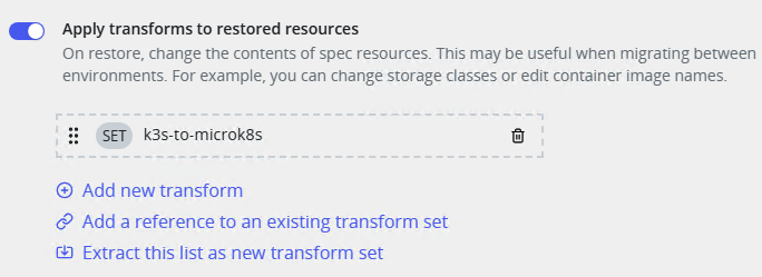 Por fim, tenho um conjunto de transformação chamado k3s-to-microk8s com duas transformações configuradas.