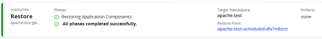 Pronto, a restauração foi concluida com sucesso aplicando as duas transformações (storage class e ingress class) e garantindo que a aplicação receba os valores corretos baseado no cluster atual.